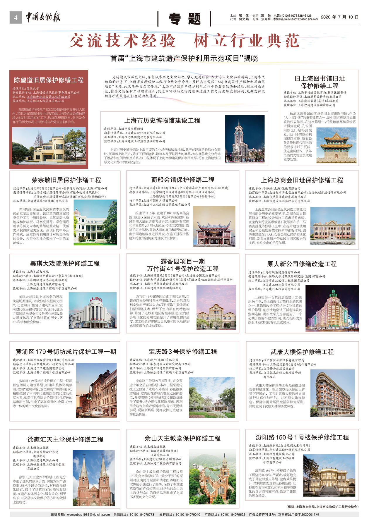 為延續(xù)城市歷史文脈,保留城市歷史文化記憶,學(xué)習(xí)先進經(jīng)驗,在上海市文化和旅游局、上海市文物局的指導(dǎo)下,上海市文物保護工程行業(yè)協(xié)會于今年6月評選出首屆“上海市建筑遺產(chǎn)保護利用示范項目”15處。