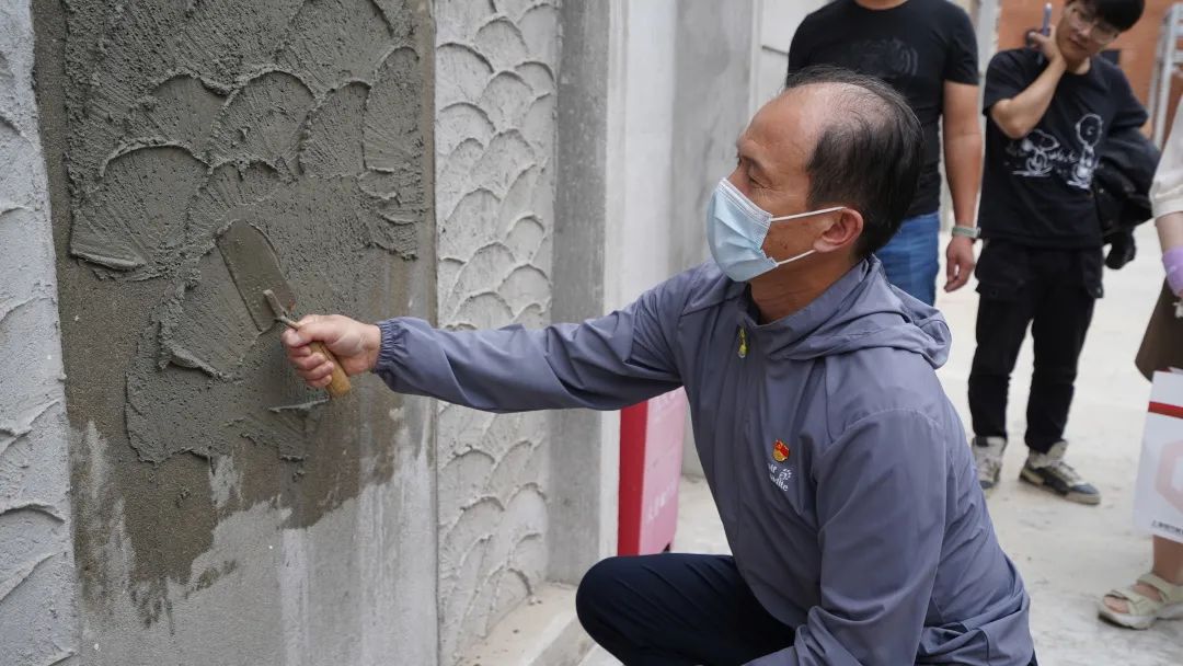 歷史建筑的修繕離不開工匠們的辛勤耕耘,他們以嫻熟技藝重現(xiàn)建筑細(xì)節(jié),以精工匠心重綻建筑神采。活動(dòng)現(xiàn)場,來自維方公司的工匠師傅為大家展示了魚鱗拉毛工藝。調(diào)制漿料,手腕一轉(zhuǎn),著力一刷,魚鱗輪廓就這樣完成了,極具弧形美感。在場的參觀者們嘖嘖稱奇,在老師傅的教導(dǎo)下,大家也化身為工匠學(xué)徒,體驗(yàn)了一回修繕技藝的實(shí)操過程,新鮮、有趣又有意義。